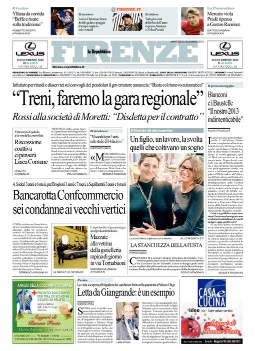 Cari amici, questo è l’articolo che oggi mi è stato pubblicato da Repubblica Firenze. Buon natale a tutti.