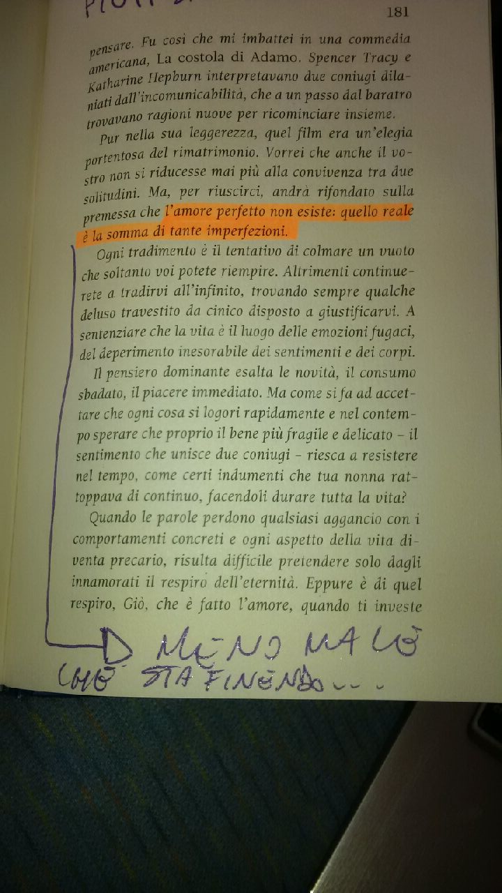 (…) l’amore perfetto non esiste: quello reale è la somma di tante imperfezioni.
